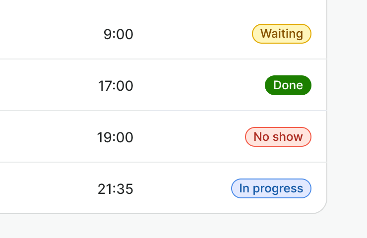 Use Badges to show the status of an interface element. Ensure the label clearly implies the sentiment, so color is not the only status indicator.