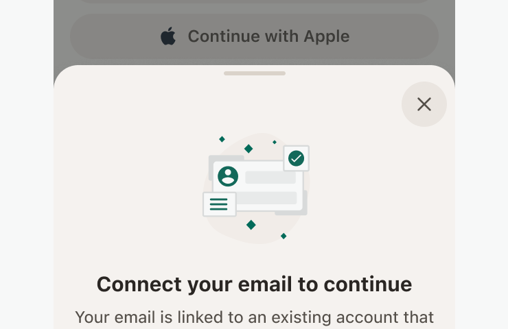 - Nested overlays. Do not open a Bottom Sheet from inside another Bottom Sheet.