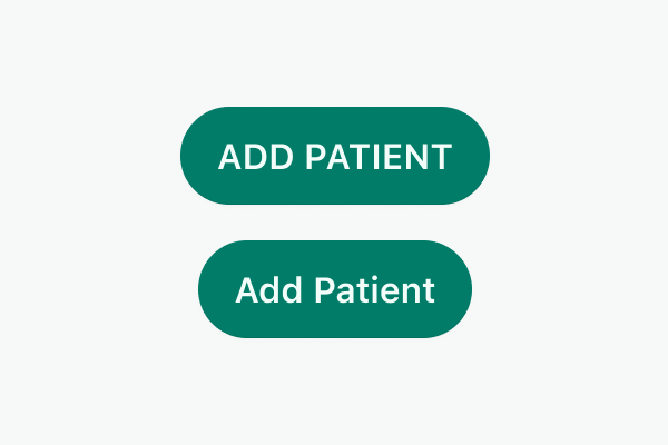 Write clear and action-driven labels using sentence-case, such as “Add patient” or “Delete appointment”. Use verb + noun whenever is possible.