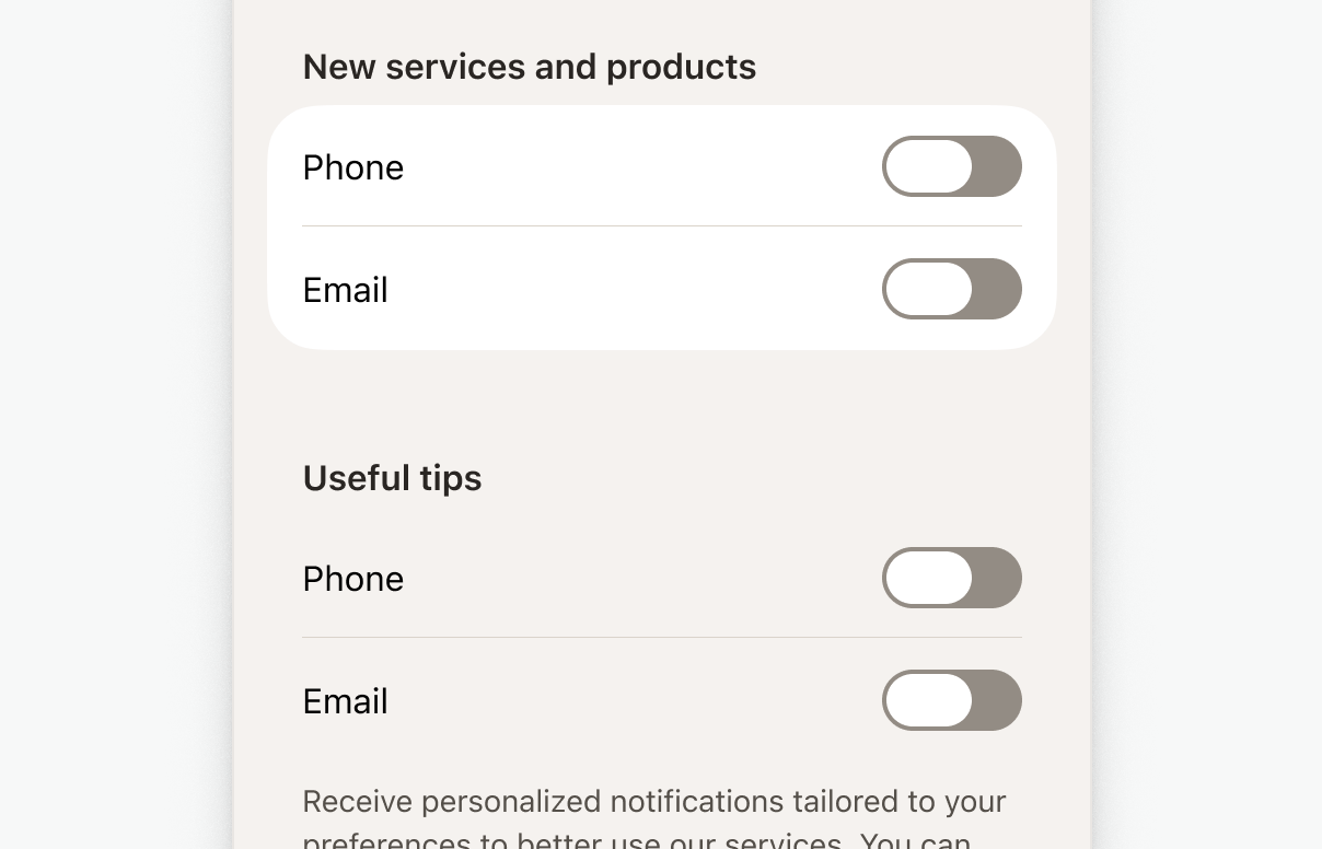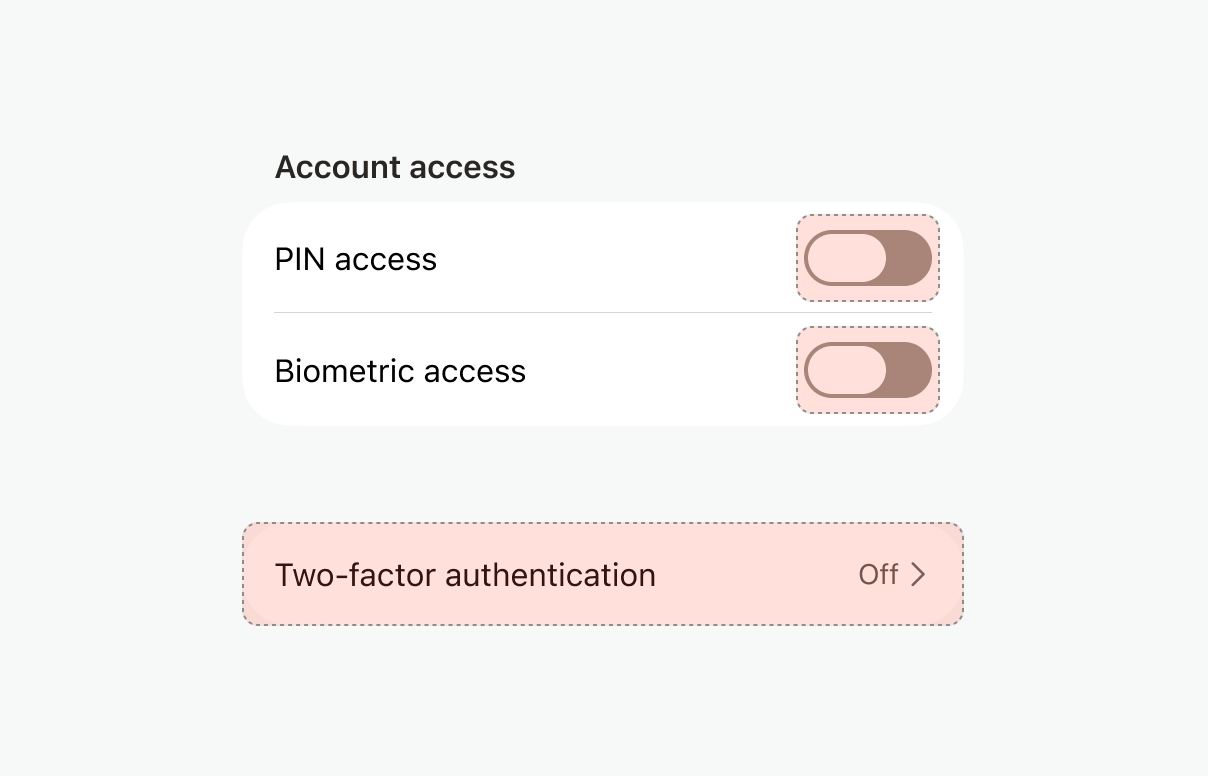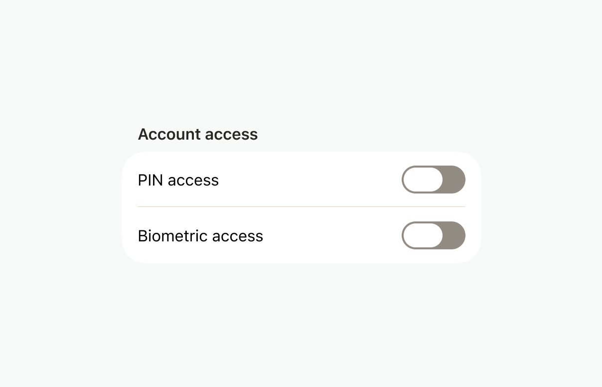 Use Toggle when the user needs to turn a setting or feature on or off. The change takes effect immediately. Only the switch itself is tappable.