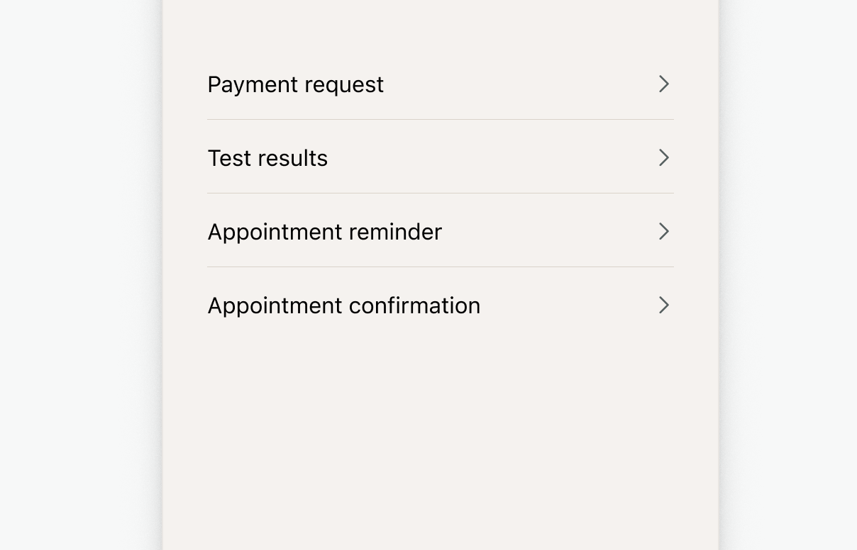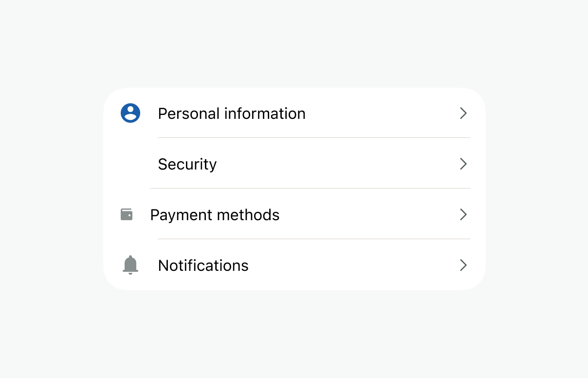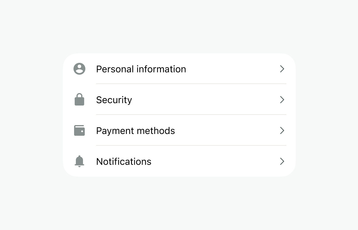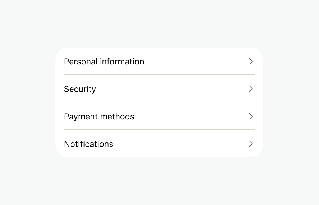 - Navigation - Present a list of destinations that let the user move between screens or sections of the app, such as a settings menu or a profile screen with grouped options.