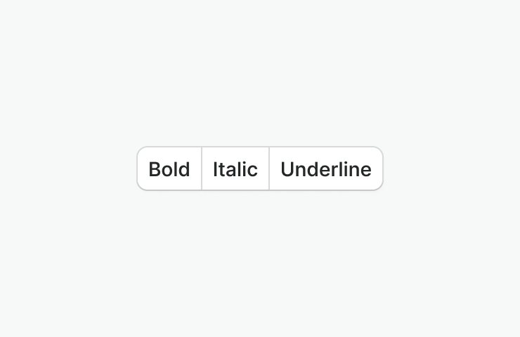 - Adjacent buttons share borders or have reduced spacing to visually indicate their relationship while maintaining individual clickable areas.