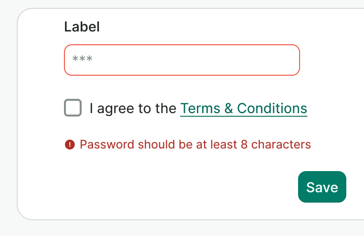 - Inline field validation errors: Displaying a specific error message immediately below a field when the user's input fails validation criteria (e.g., character limit exceeded, incorrect format).
