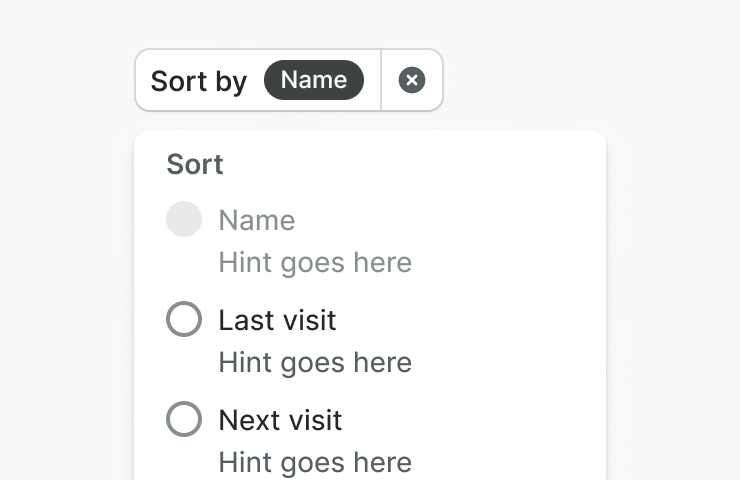 - Label: Always shows just the name of the filter (e.g. “Status”) to indicate context