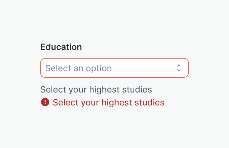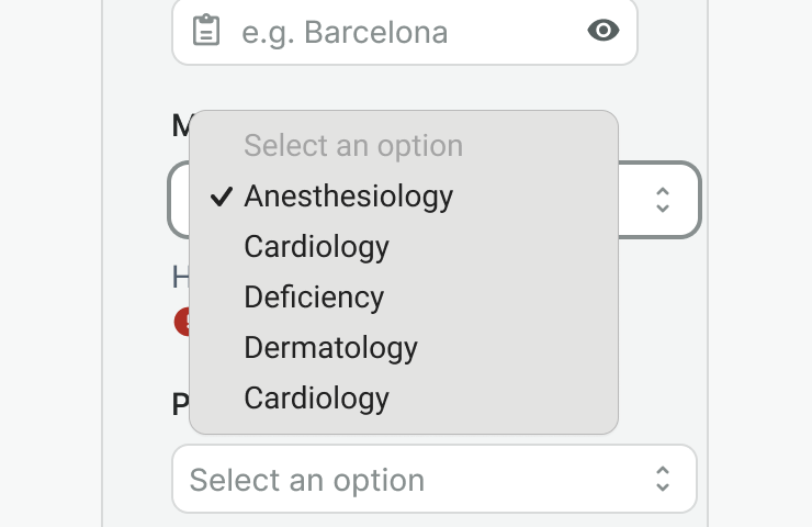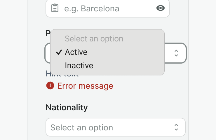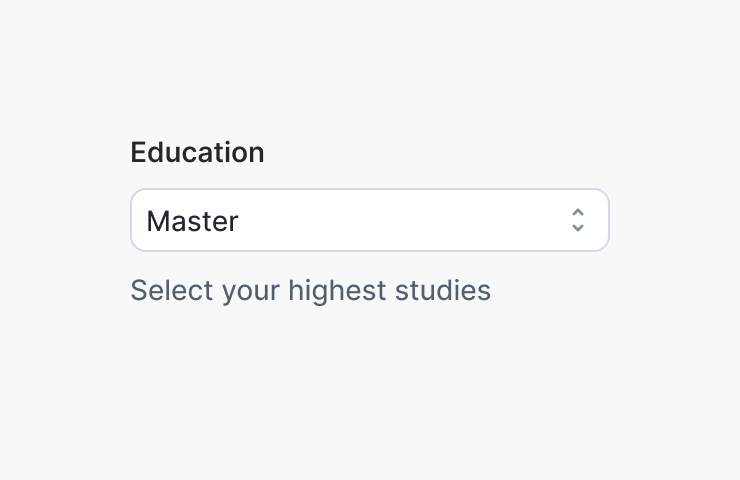 - Select field: The control that displays the chosen value and opens a list of options on interaction.