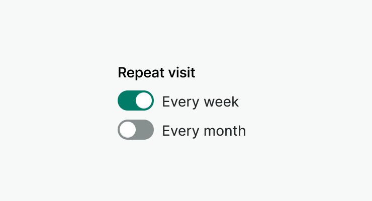 - Toggle a setting between two states (on/off) when the change takes effect immediately.