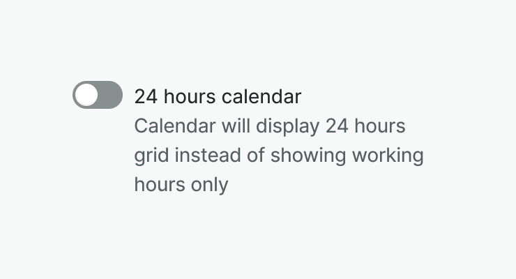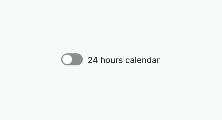 Default variant of the toggle. Control is displayed on the left with label and hint next to the control. Control and text is aligned to the top horizontally.